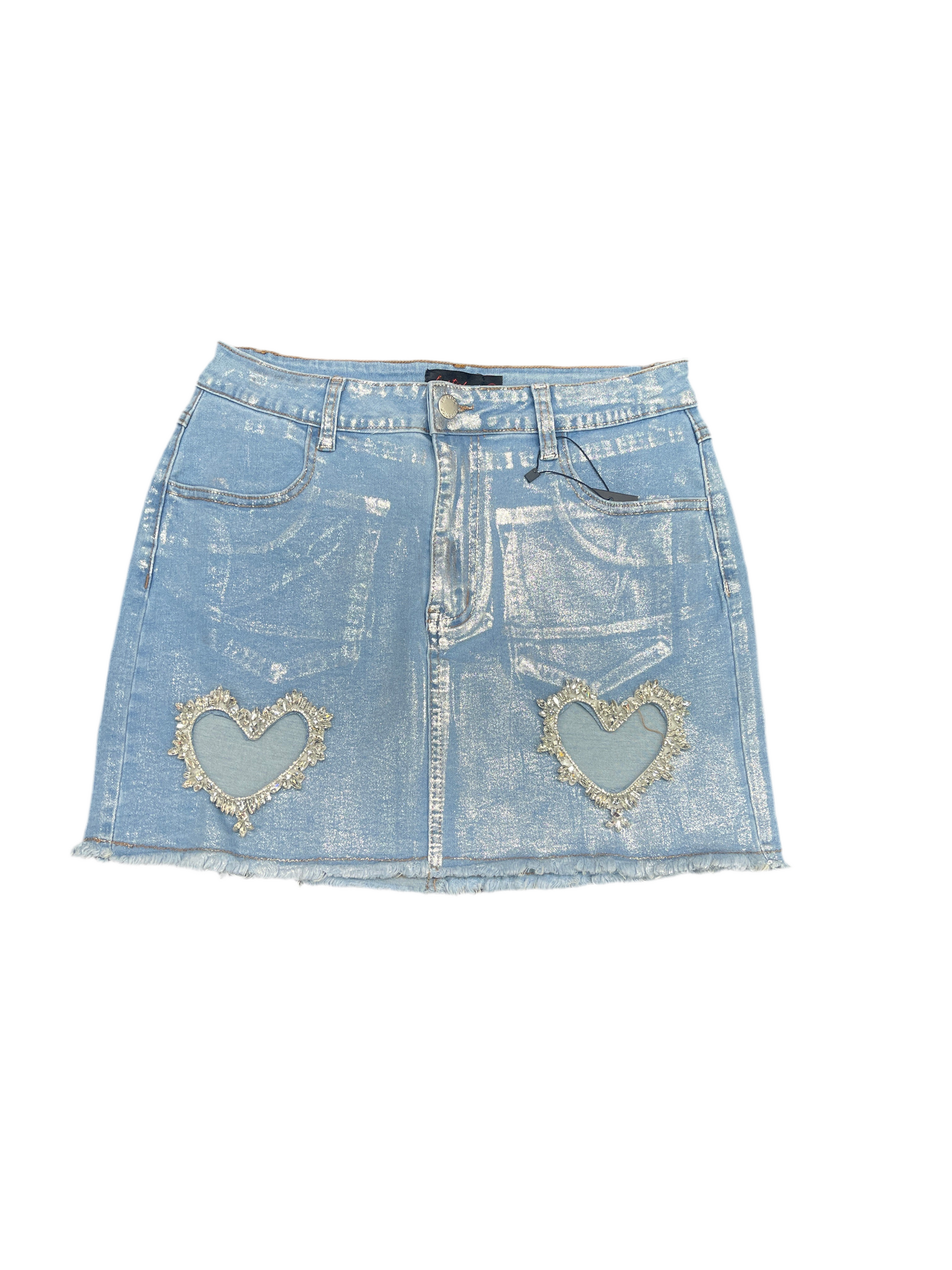 Rhinestone heart skirt Denim Blue