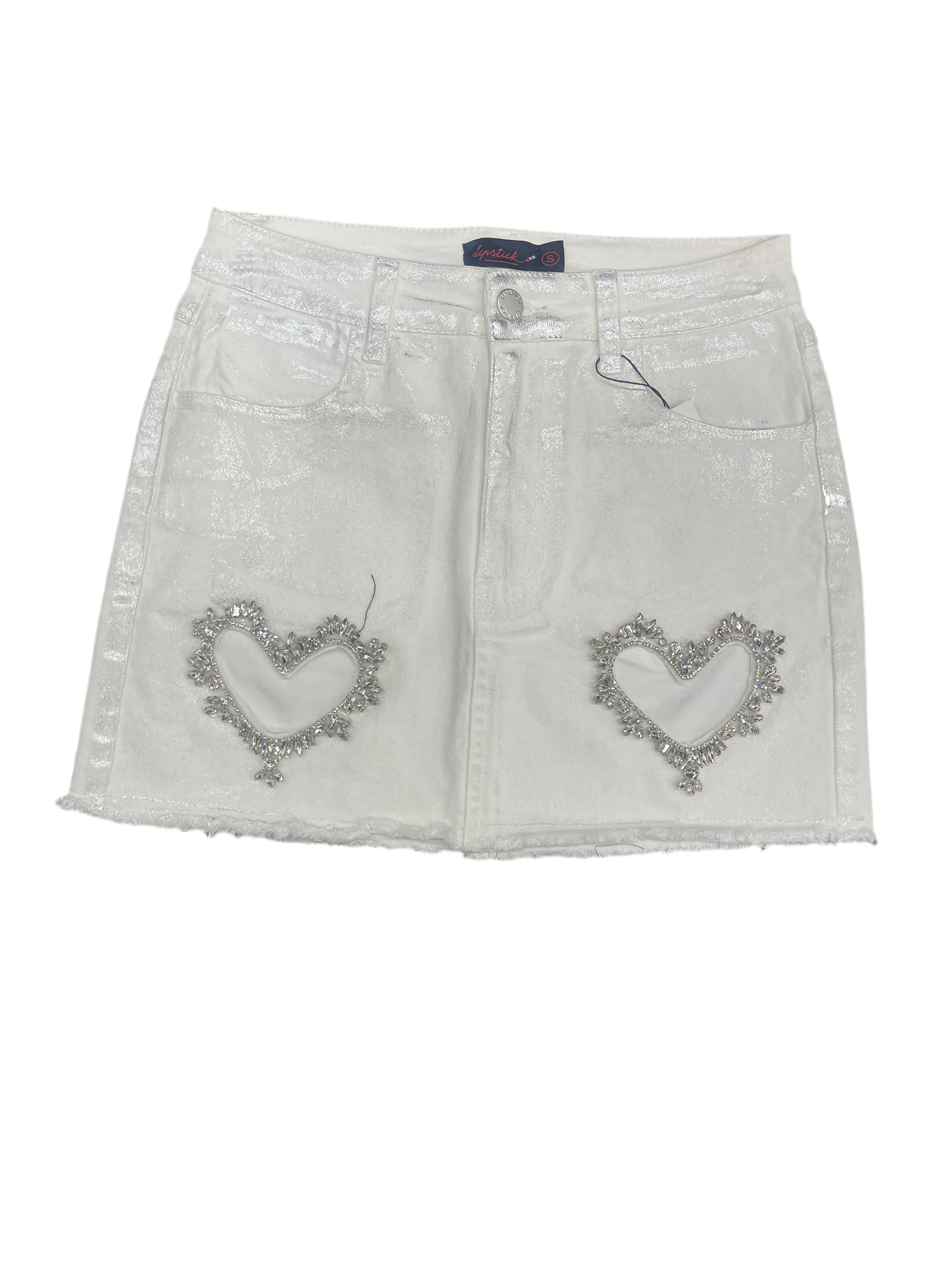 Rhinestone heart skirt White