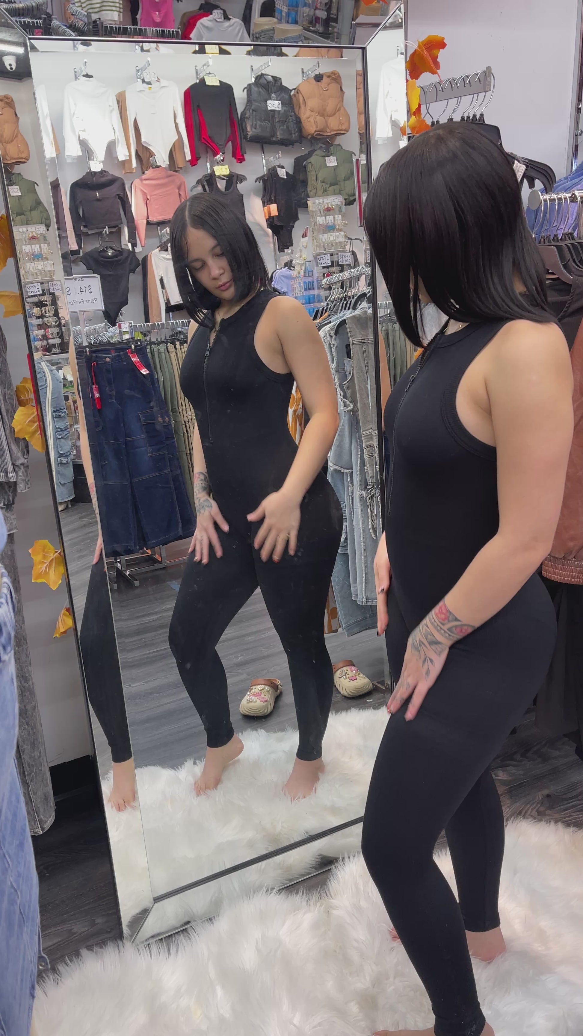 Zip up crewneck tank jumpsuit